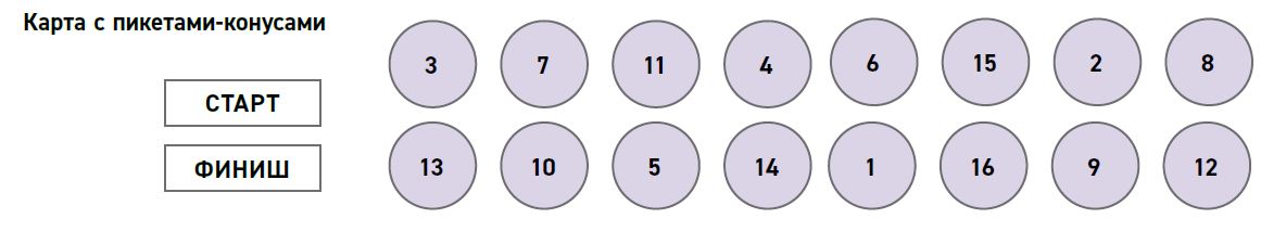 Напротив команд на расстоянии 9 м устанавливаются стойки, которые необходимо обежать.