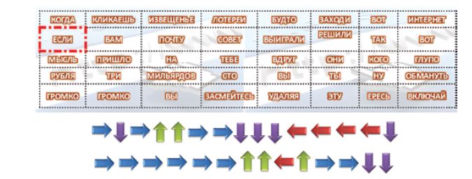 Для начала давайте прочитаем правило безопасного поведения в сети Интернет, используй таблицу со словами. Двигайтесь по ней следуя указаному алгоритму.