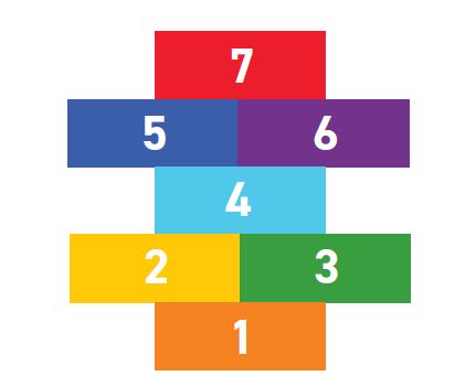Назовите каждый цвет по порядку сверху вниз. (Первый – красный, второй – оранжевый и т. д.)